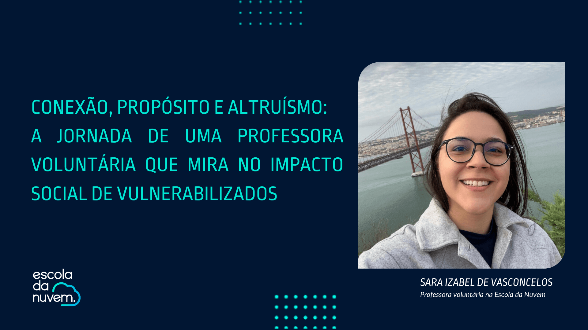 Engenheira de Produção por formação, Sara Izabel de Vasconcelos tem 25 anos e gosta de passar o tempo livre lendo, cozinhando, assistindo à séries e passeando com o animal de estimação. Atualmente em transição de carreira para a área de Tecnologia da Informação, a profissional adicionou à lista de afazeres mais um item: há algum tempo, tem trabalhado como professora voluntária em uma ONG de impacto social. Na Escola da Nuvem, entidade que prepara estudantes em situação de vulnerabilidade acima de 16 anos para carreiras em computação em nuvem, ela dá aulas de soft skills, as chamadas habilidades comportamentais, como comunicação, inteligência emocional e trabalho em equipe.