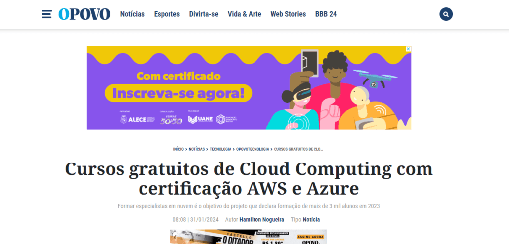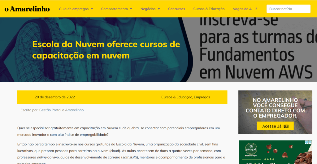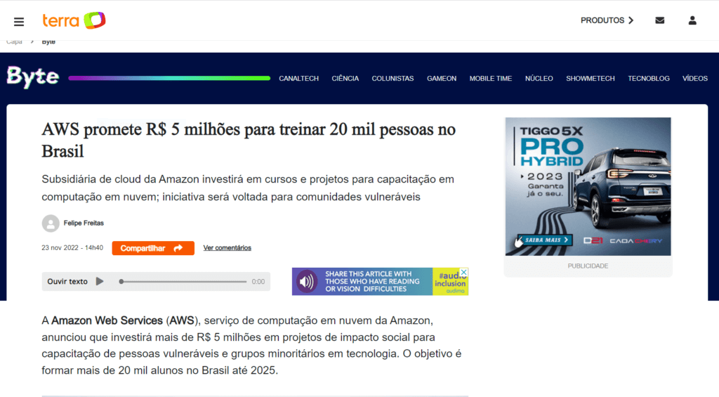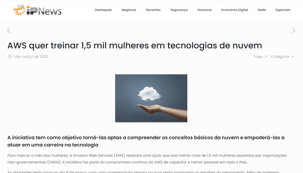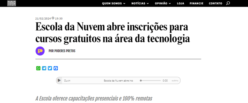 A parceria da Escola da Nuvem com a Amazon foi citada nesta reportagem do G1 como uma das oportunidades para quem quer estudar computação em nuvem de forma gratuita. O público-alvo do programa são pessoas em situação de vulnerabilidade e sub-representadas no mercado de Tecnologia.