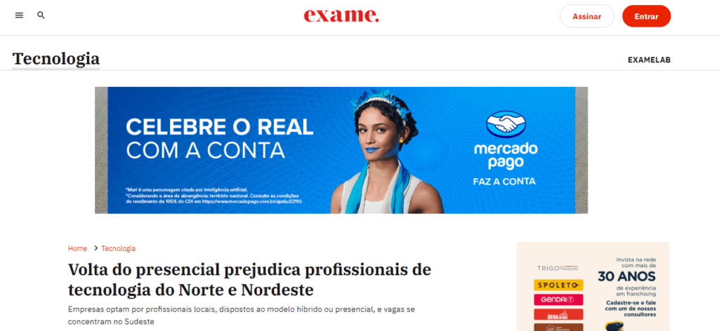 Esta reportagem publicada pela Exame mostra o contraste de oportunidade de vagas em Tecnologia para os profissionais que estão no Norte e Nordeste em comparação aos que moram no Sudeste. As duas primeiras regiões são mais afetadas, pois as empresas priorizam o trabalho presencial ou híbrido, mas a quantidade de oportunidades nas áreas do país não é a mesma. Ana Letícia Lucca, CRO da Escola da Nuvem, comenta o assunto.