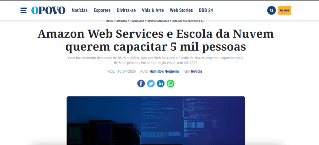 A AWS está investindo R$15 milhões no Brasil para ampliar a oferta de profissionais qualificados em computação em nuvem e aumentar a diversidade de pessoas na área, montante que será alocado à Escola da Nuvem. Saiba mais na reportagem de O Povo.